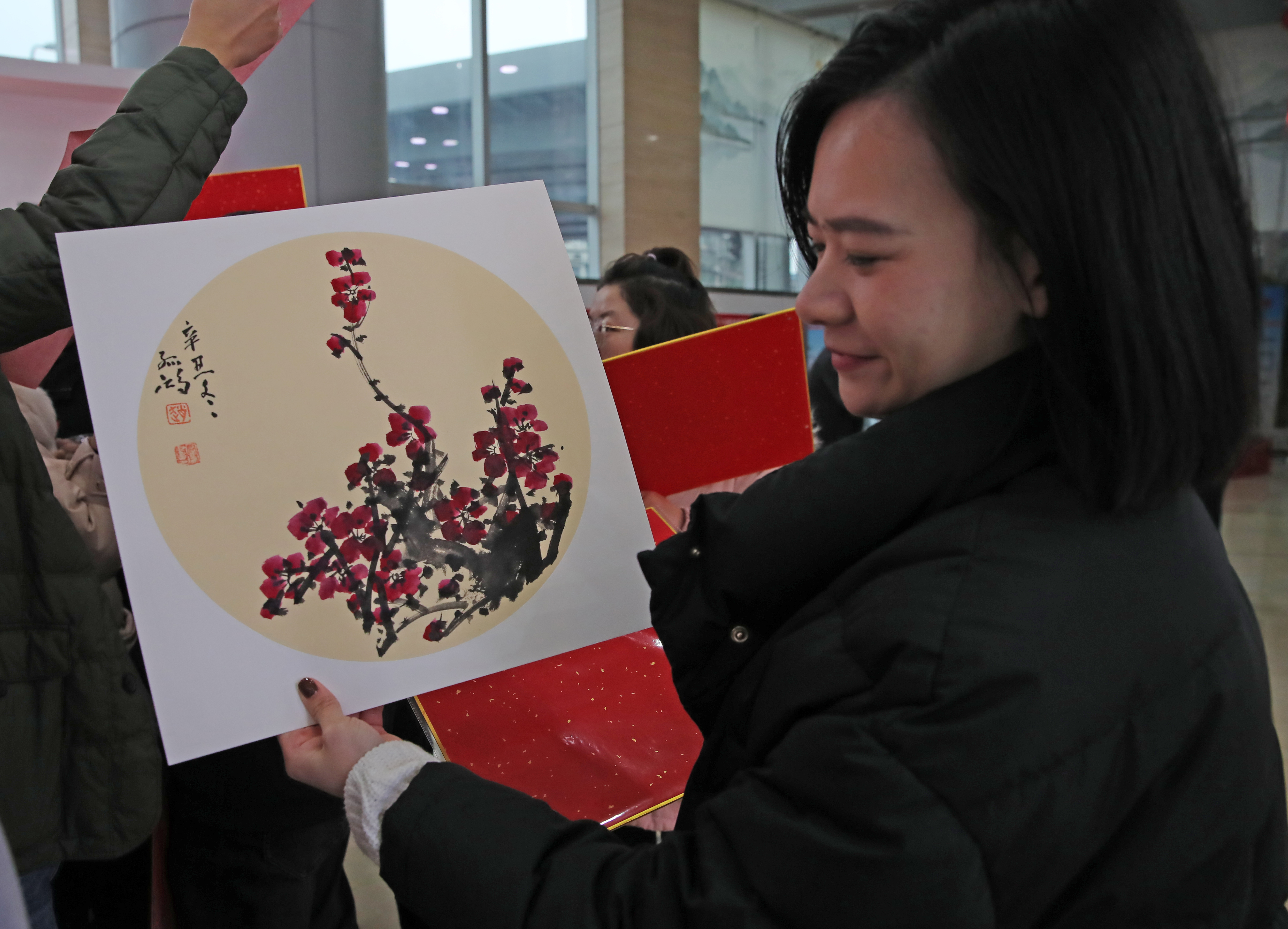 求福字求对联求祝福的职工络绎不绝,频频与老师互动,有拿到了喜爱的对联、精美的“福”字、美丽的画作,也有拿到了对家庭的祝福和儿女的祝愿,脸上都洋溢着无比幸福的笑容,活动现场气氛美丽如画、温暖如春,好不热闹。