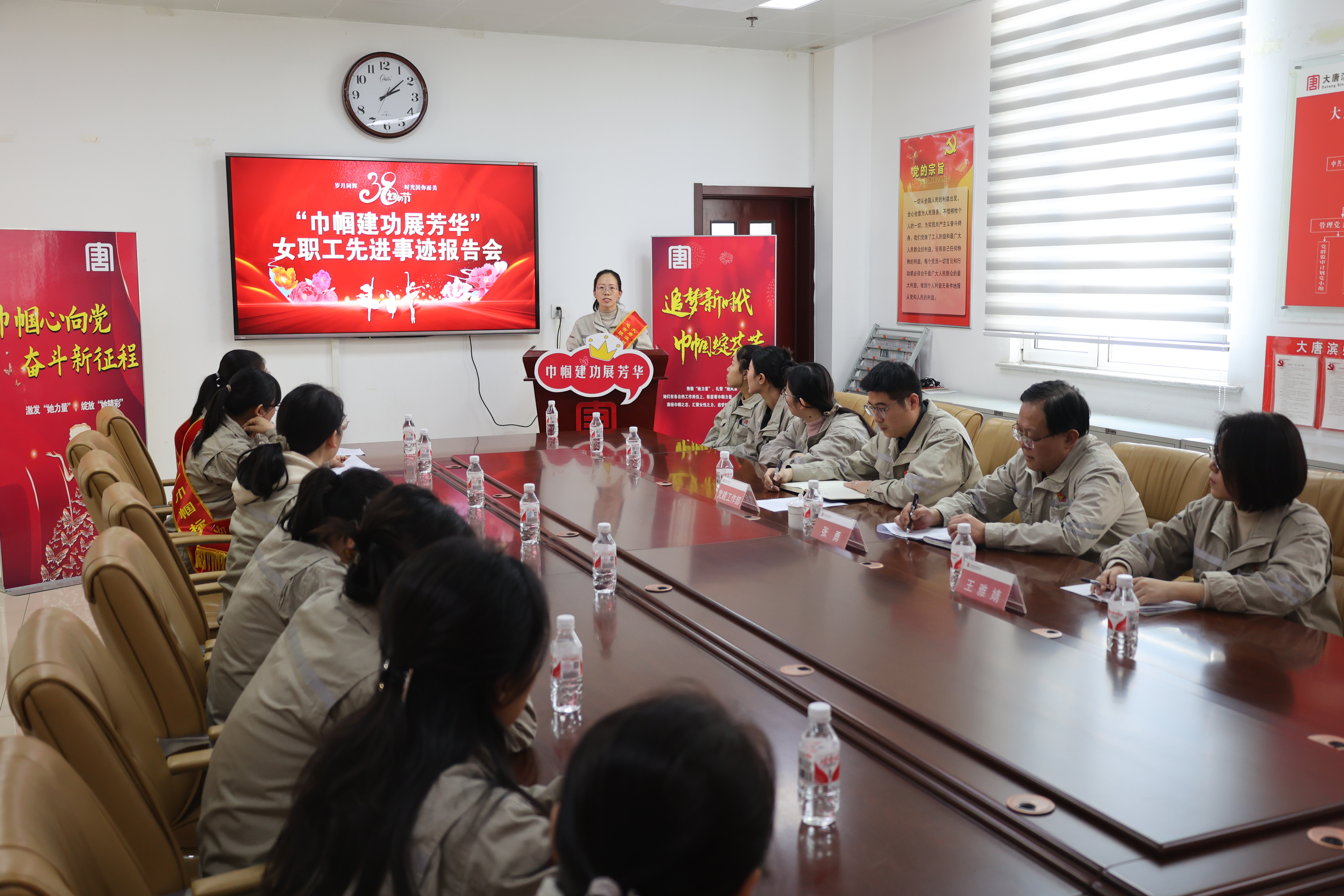 临汾热电公司举办了一场别开生面的巾帼建功表彰访谈会,7位受表彰巾帼建功标兵与该公司领导进行面对面座谈,敞开心扉话感恩、分享成长的收获,领导寄语送嘱托。(彭娜 李琳)