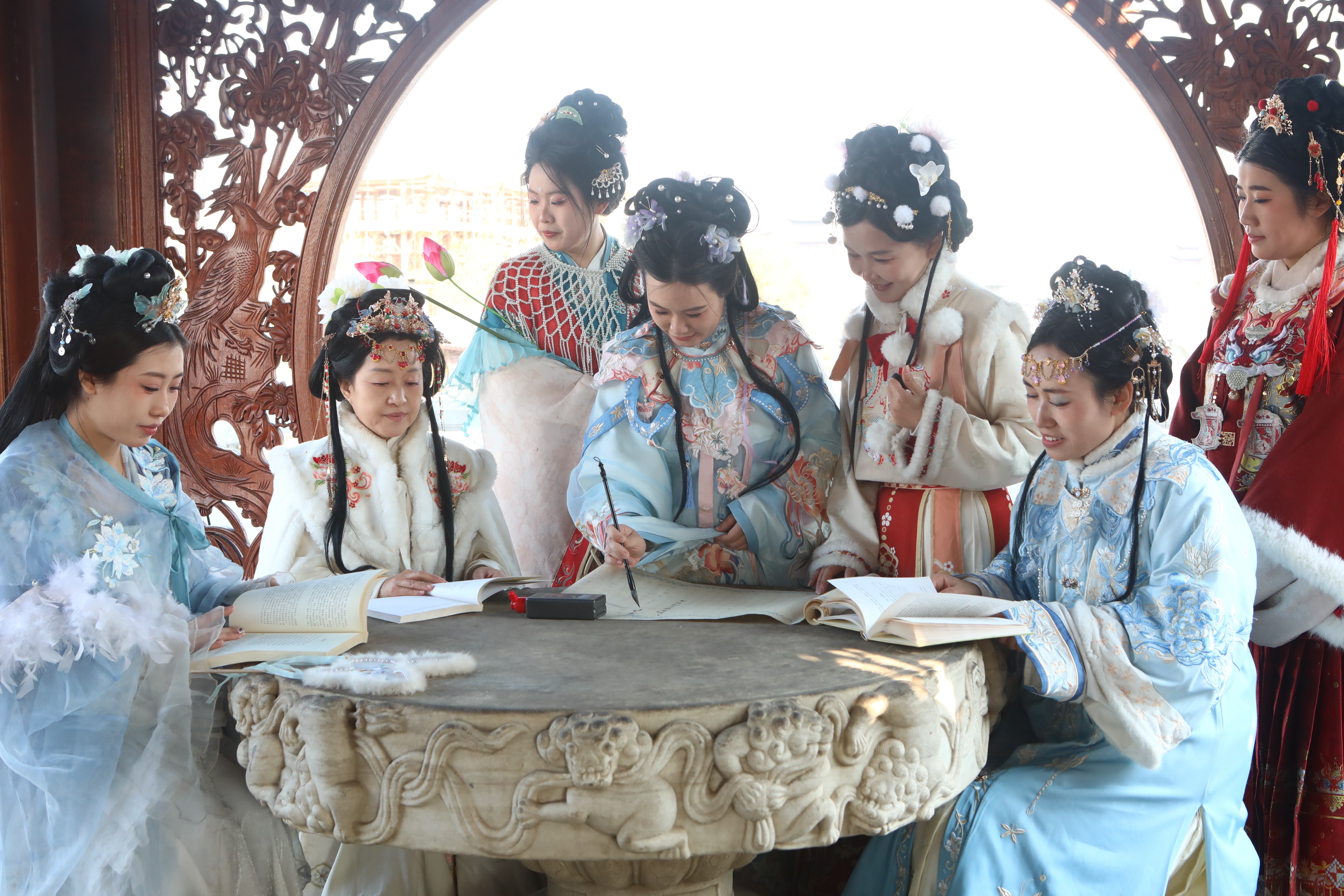 3月6日,临清热电公司组织开展了主题为“品诗词之韵 赏经典之美”的女职工汉服诗会。女职工们身着华服、发髻高挽,先后参与了诗词诵读、书法、飞花令等传统文化项目,沉浸式体验穿越千年的华韵风雅,感受传统诗词的韵味意境。(刘奎海 侯晓红)