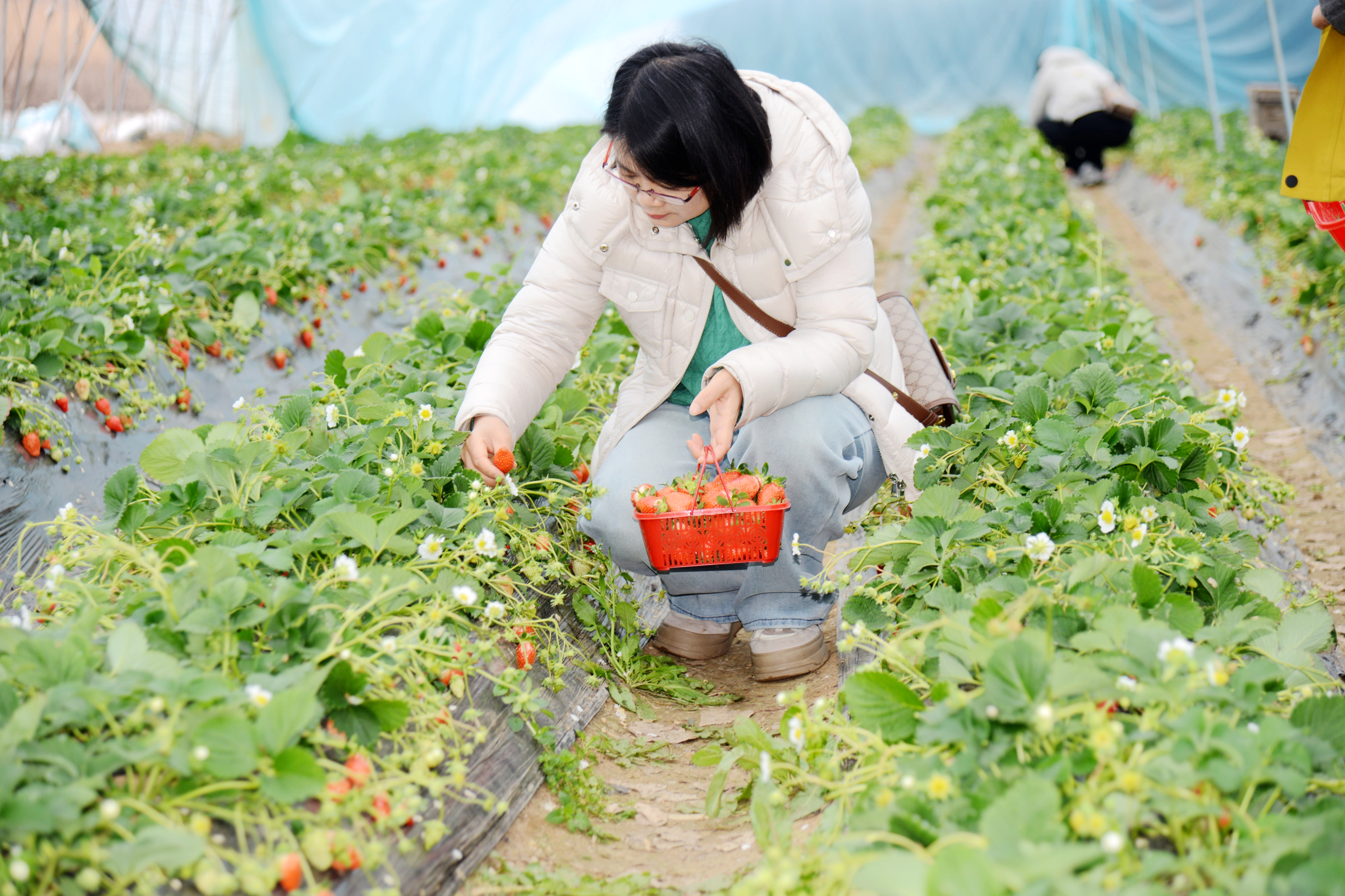 葫芦岛热力公司组织开展“与春相约 莓好同行”主题采摘活动。女职工们手持采摘篮穿梭在田垄间,欢声笑语在暖意融融的温室中流淌。(刘庚 王迪 )