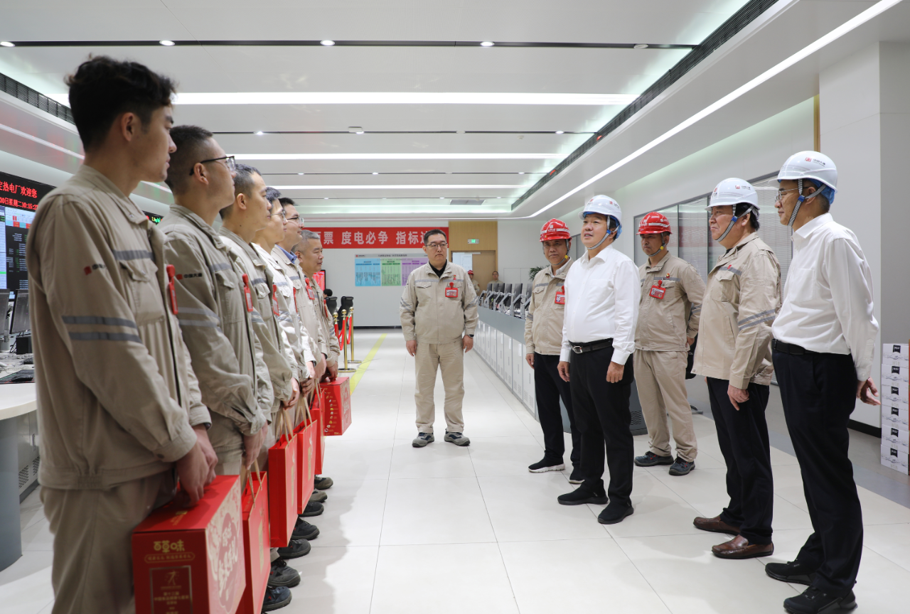 吕军一行深入汽机平台、集控室和厂史展示区等地,实地查看机组运行状况,详细了解机组参数和保电工作安排,认真听取企业发展历程介绍、转型发展及经营管理等情况。