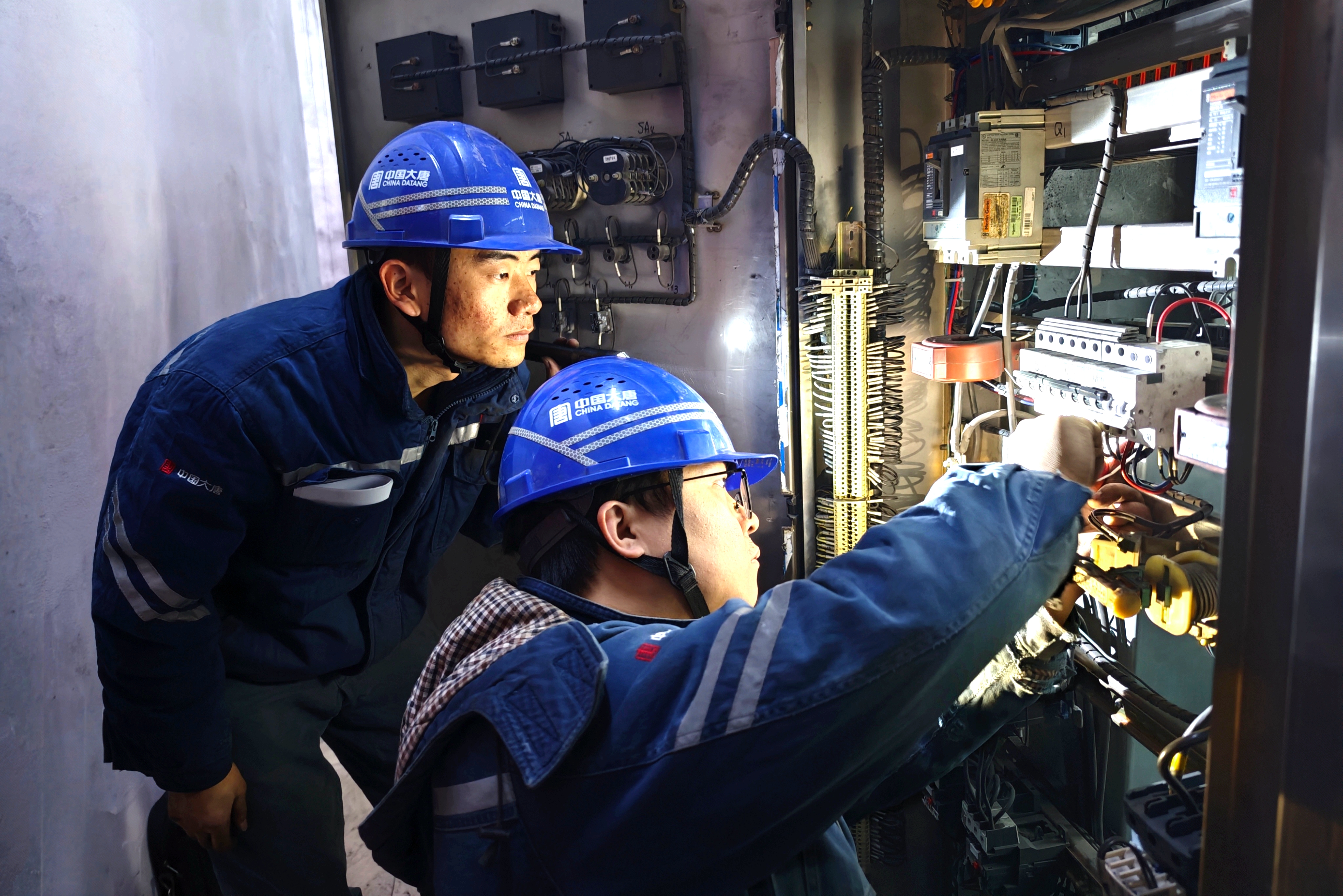 “师傅,电磁阀已经换好了,你再就地试一下煤斗能动了吗?”