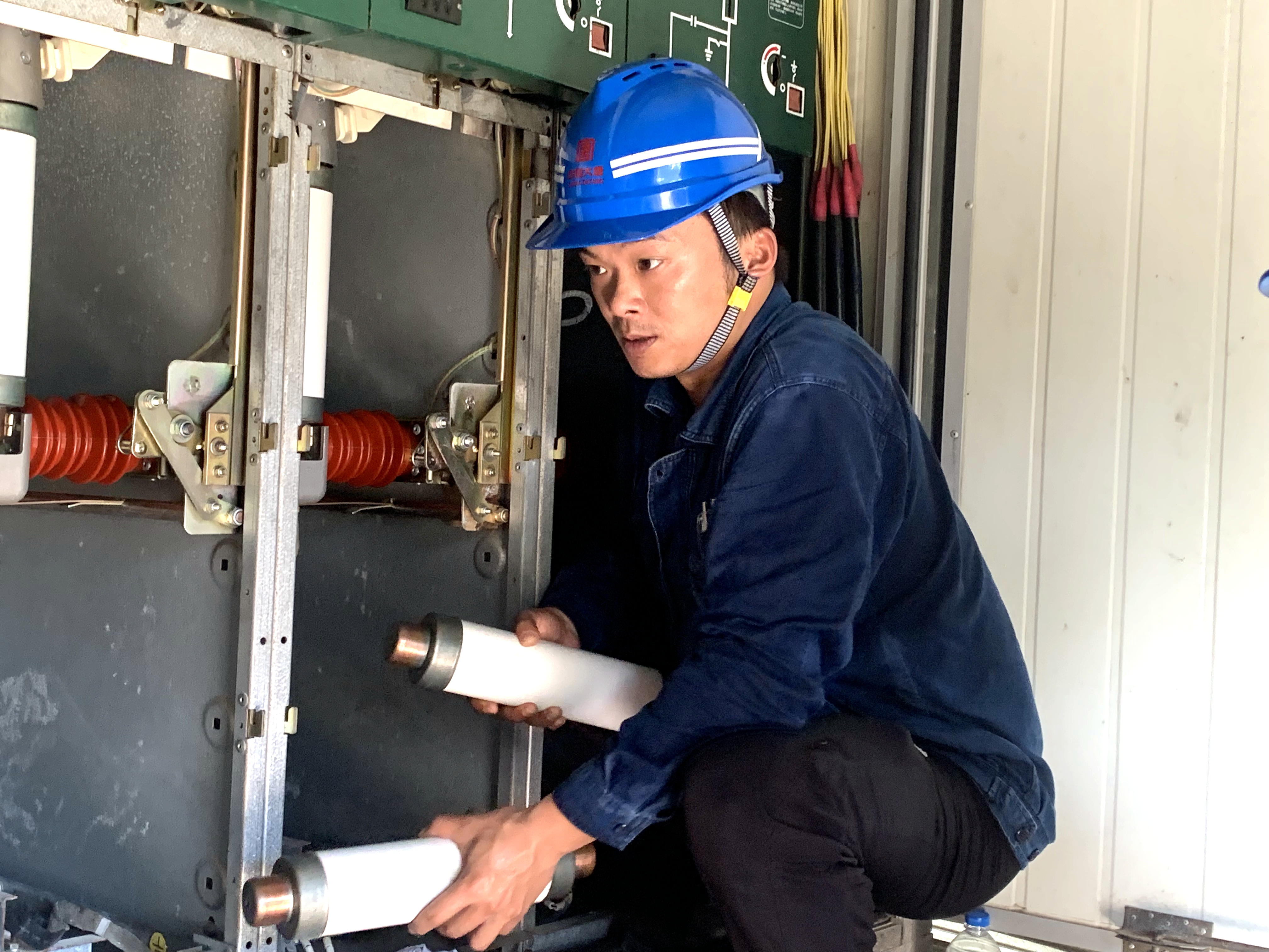 “今天是最后一台了,加把劲,一口气处理完。”甘欣正蹲在环网柜前,半个身子完全探进柜体内,仔细地拆卸着高压熔断器。