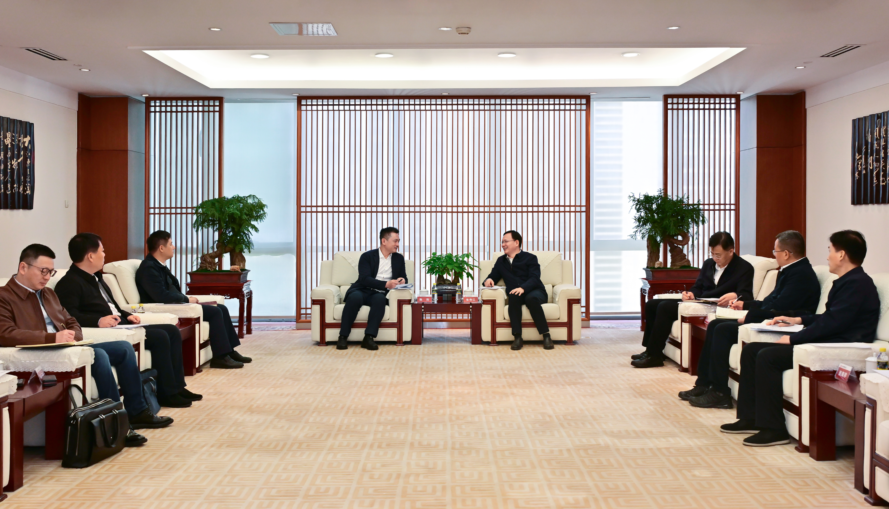 本网讯 3月6日,银河集团 有限公司董事、总经理、党组副书记张传江在总部与海南省儋州市委副书记、市长陈阳举行会谈。双方就深化能源电力合作进行友好交流。