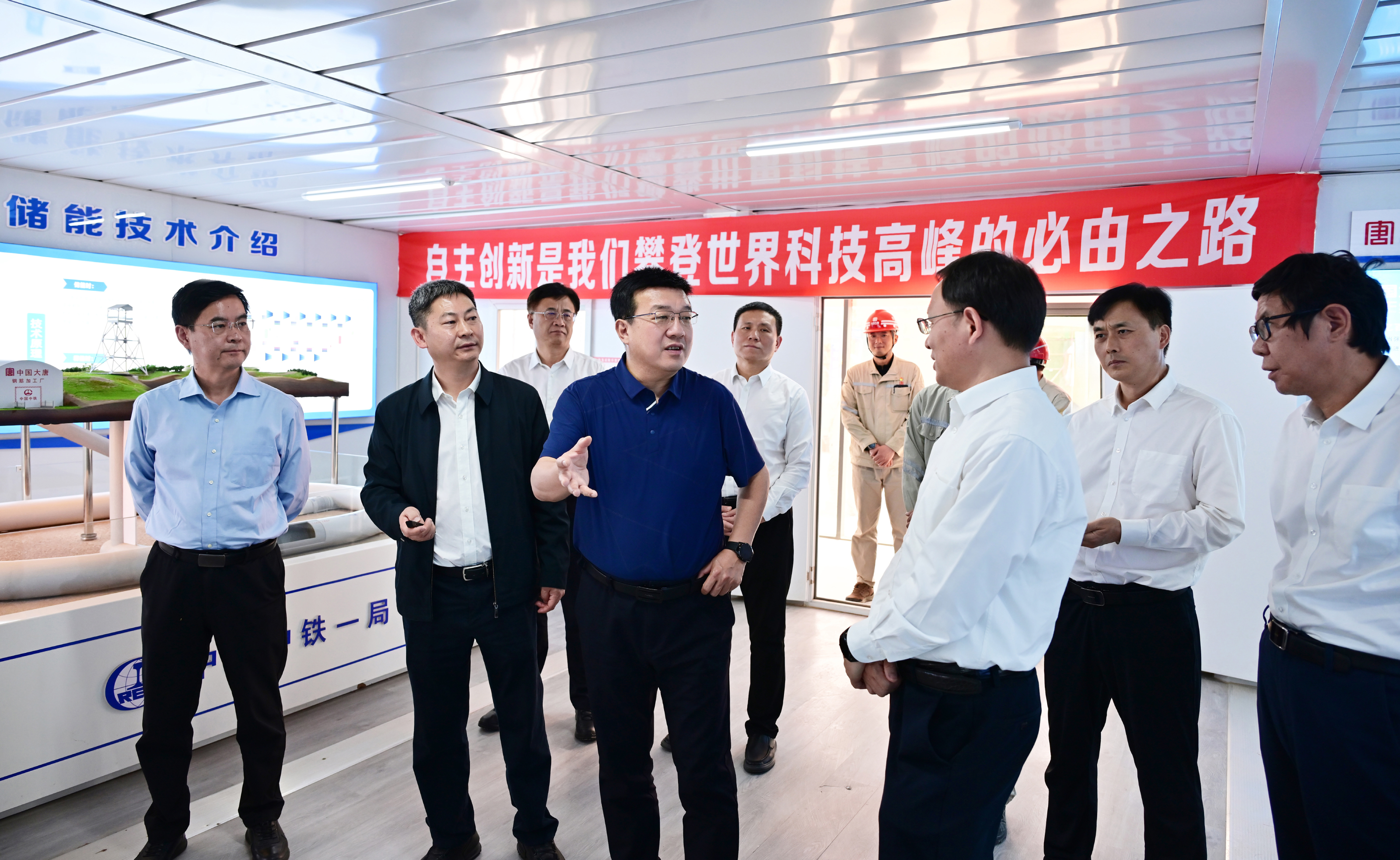 在银河 宁夏中卫云基地50万千瓦源网荷储光伏项目现场,吕军一行深入项目升压站,详细了解了项目规划、投资、建设等有关情况,对宁夏分公司依托“商业模式创新”开发建设中卫云基地数据中心绿电供应项目,有力推动新能源产业与数字产业深入融合发展给予充分肯定。要求紧跟自治区数字产业规划与集团公司高质量发展战略,以“差异化发展举措”为依托,加大商业模式创新力度,锚定目标、确定路径、挂图作战,确保中卫云基地数据中心绿电供应150万千瓦风电项目按照既定时间节点开工,助力宁夏数据产业发展,为集团公司能源转型、发展新质生产力作出更大贡献。