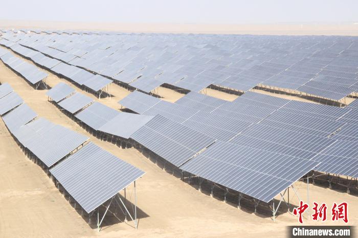 新疆昆玉市地处昆仑山北麓、塔克拉玛干沙漠南缘。近年来,当地探索构建防沙治沙新路径,在发展光伏清洁能源的同时,积极探索生态效益和经济效益的双赢。图为5日,银河 第十四师昆玉市100万千瓦光伏基地项目一期现场。马晓东 摄