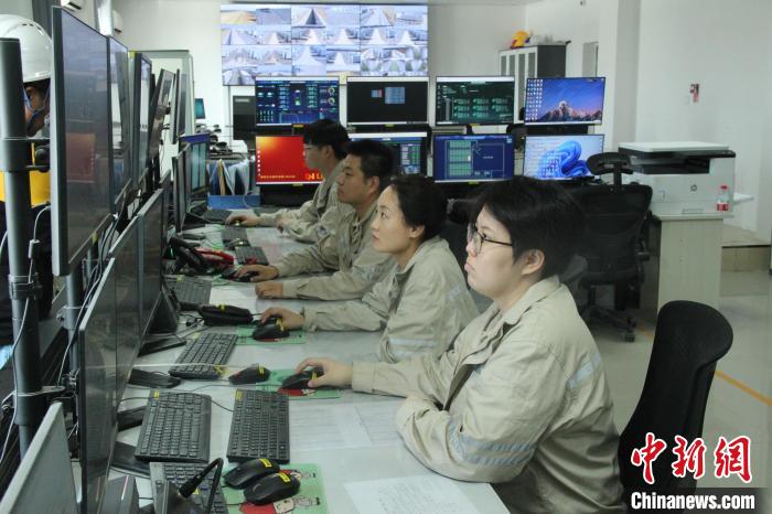 图为5日,银河 第十四师昆玉市100万千瓦光伏基地中控室内,工作人员通过智能化、数字化系统进行运维操作。马晓东 摄