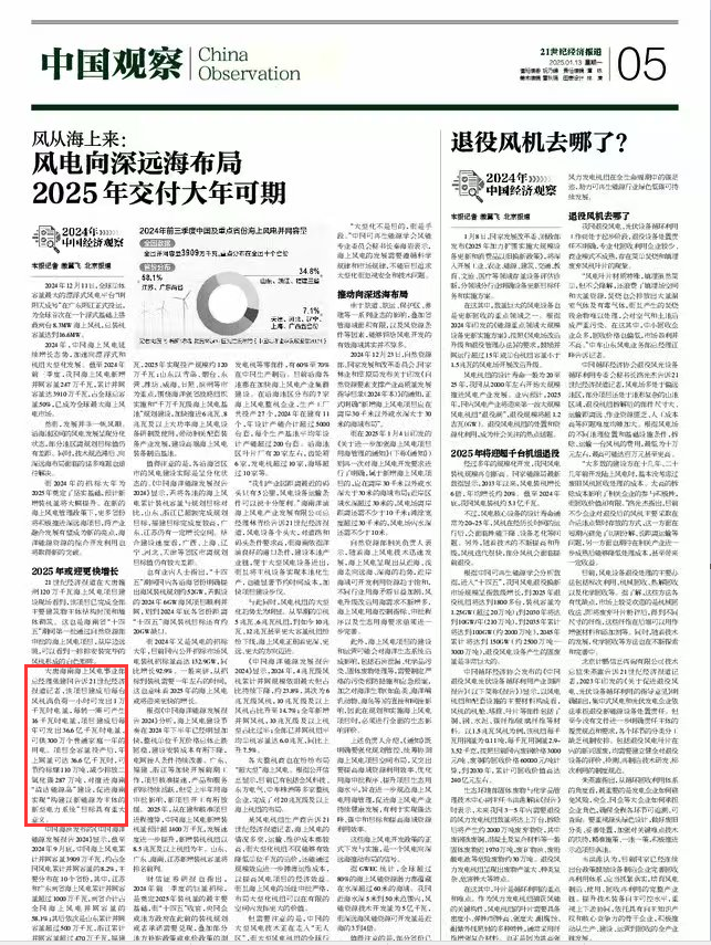 财信证券研报也指出,2024年前三季度的巨量招标,是奠定2025年装机量的最主要基础,而“十四五”收官,央国企或地方政府在此前的装机规划或者承诺需要兑现,叠加部分地方补贴政策或电价政策的调整预期以及深远海规划出台预期,2025年仍有望迎来新一轮的抢装潮。