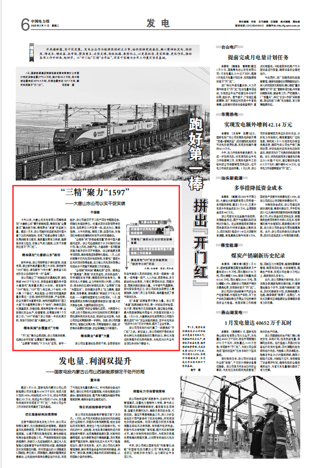 “全领域”向利润“最高纪录”进军。瞄准全年“摸高值”,聚焦“多发效益电、多供效益热”,科学调控发电节奏,增强现货市场竞争力。精研风电入市策略,全力冲刺利用小时数、上网电价、综合热价区域对标领先优势。“全周期”打造“为国担当”。加快建设世界上“压力最高、温度最高、效率最高、煤耗最低”单轴百万千瓦火电机组——银河 郓城国家电力示范项目。1月,国家能源局发布第四批能源领域首台(套)重大技术装备名单,银河 郓城项目在列。