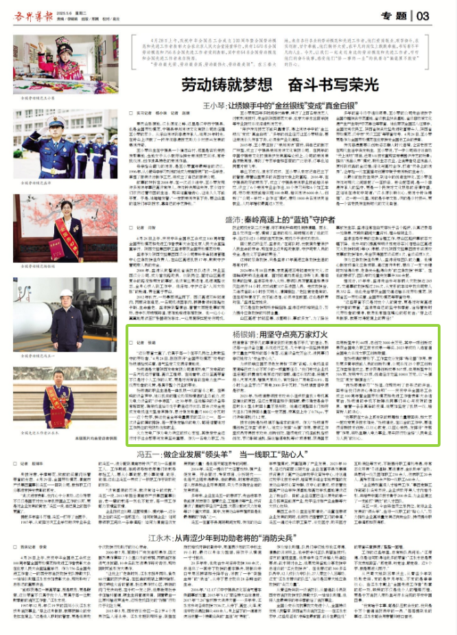 2025-5-6三版[各界导报]杨银娟:用坚守点亮万家灯火