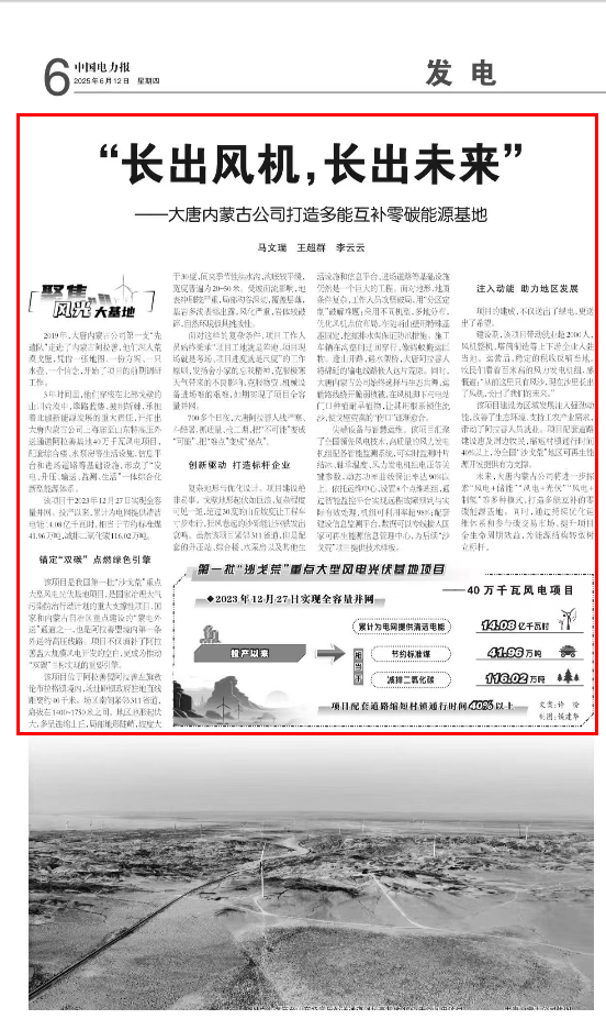 2025-6-12-6版中国电力报【长出风机长出未来】银河 内蒙古公司打造多能互补零碳能源基地