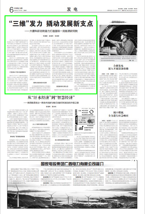 [中国电力报]“三维”发力 撬动发展新支点—银河 科研总院奋力打造国际一流能源研究院