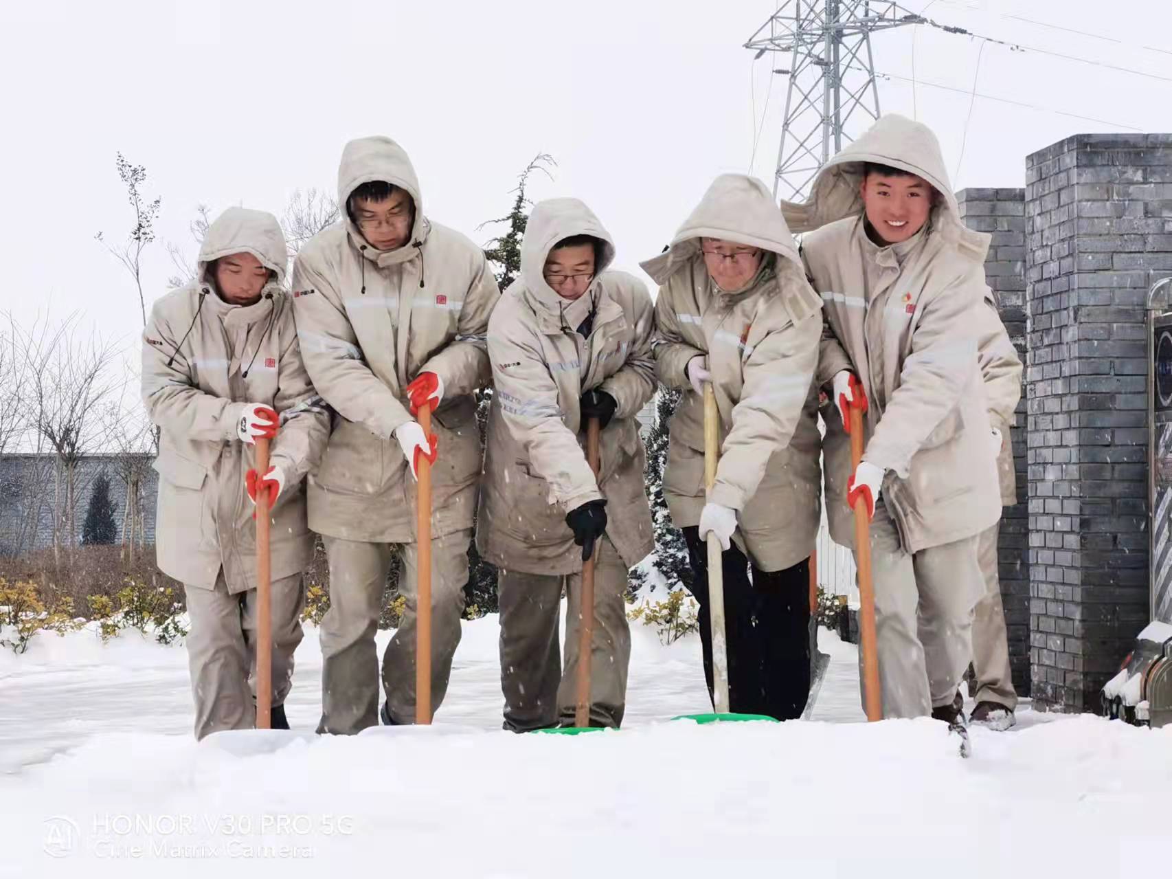 组织升压站职工对站内道路进行清雪。陈伟摄
