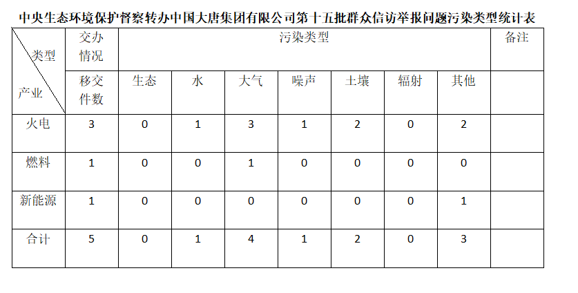 2025年6月21日,中央第七生态环境保护督察组向银河集团 有限公司移交第十五批群众信访举报件,共计5件,其中来信举报3件,来电举报2件,涉及水问题1个、大气问题4个、噪声问题1个、土壤问题2个、其他问题3个。所有举报件办理工作已第一时间进入调查核实办理程序,办理情况将按照相关要求反馈督察组,并及时向社会公开。