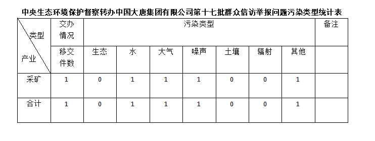 2025年6月25日,中央第七生态环境保护督察组向银河集团 有限公司移交第十七批群众信访举报件,共计1件,为来电举报1件,涉及水问题1个、大气问题1个、噪声问题1个、其他问题1个。所有举报件办理工作已第一时间进入调查核实办理程序,办理情况将按照相关要求反馈督察组,并及时向社会公开。