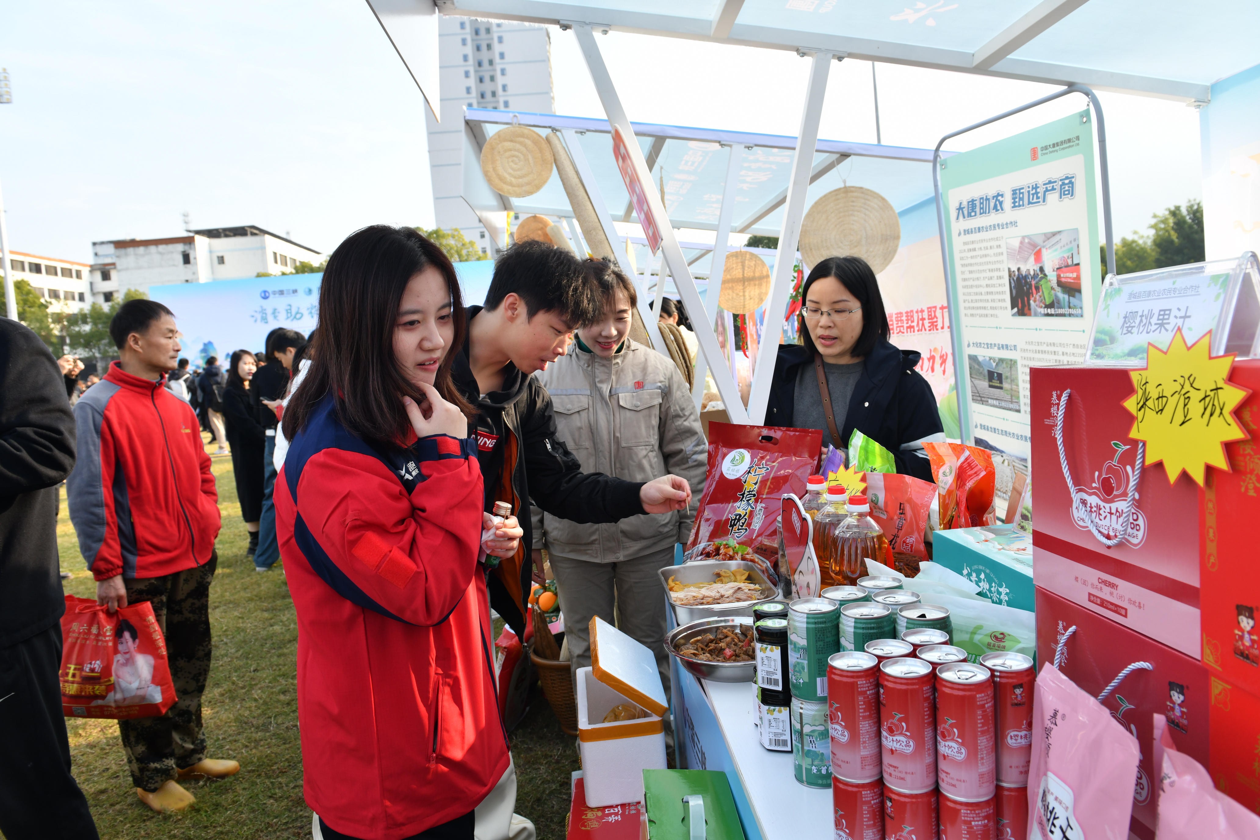 定点帮扶的广西大化瑶族自治县、陕西澄城县的20余款特色商品进行现场展销。湖北省巴东县沿渡河电业发展有限公司积极组织当地职工倾力驰援,职工们化身“销售员”,热情地向参观者介绍参展产品的特色。大化七百弄盐焗鸡、柠檬鸭香味扑鼻,澄城秋梨膏、樱桃汁令人垂涎欲滴,吸引了大量消费者驻足品尝购买。