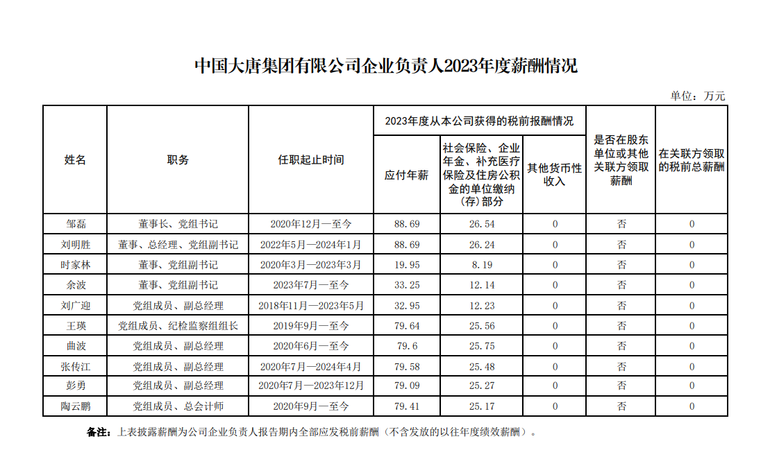 银河集团 有限公司企业负责人2023年度薪酬情况